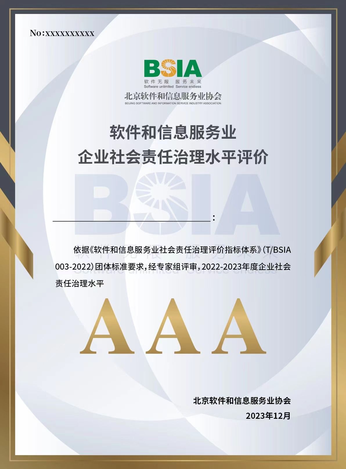 《软件和信息服务业社会责任治理评价指标体系》(T/BSIA 005-2022)团体标准。