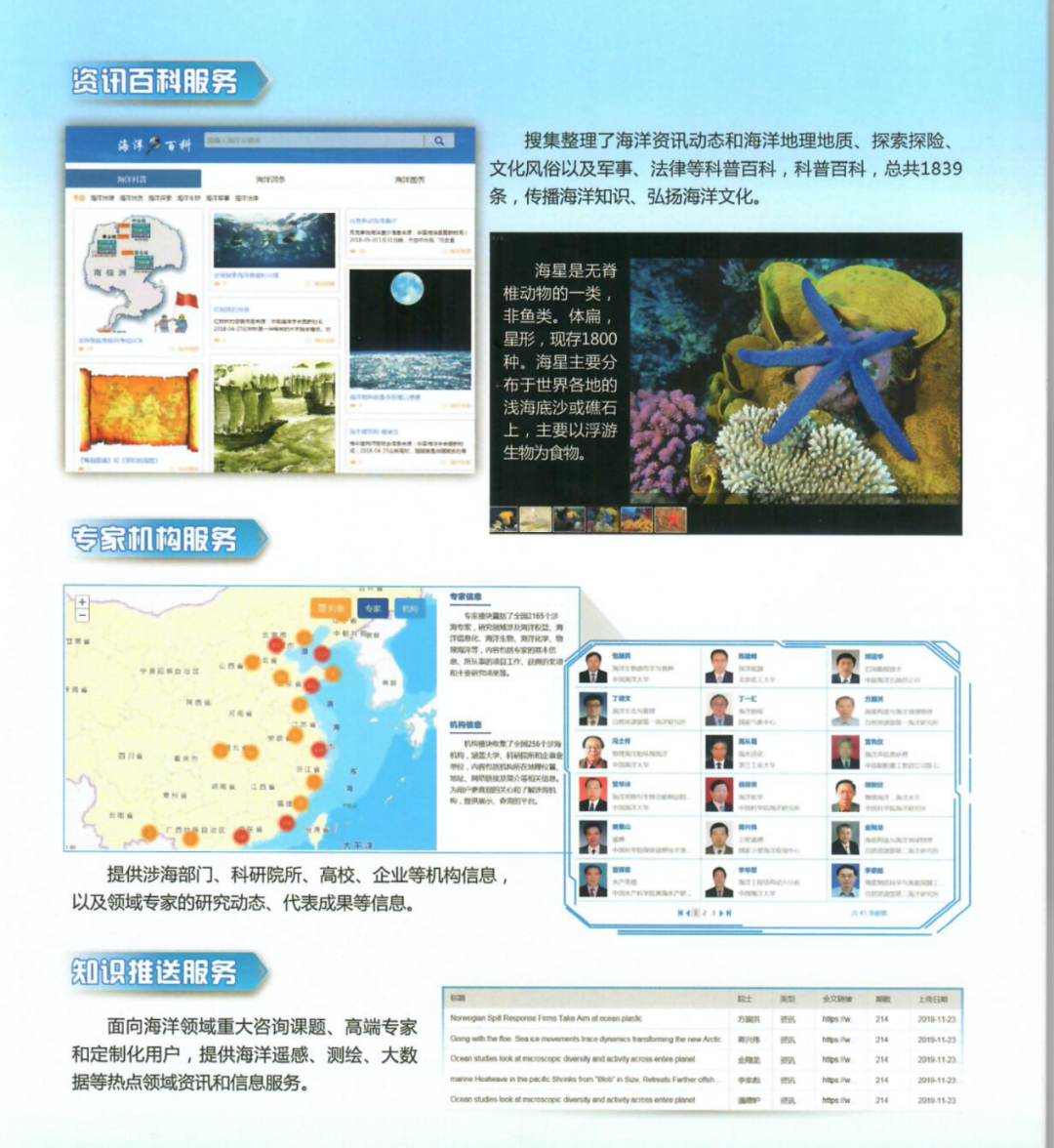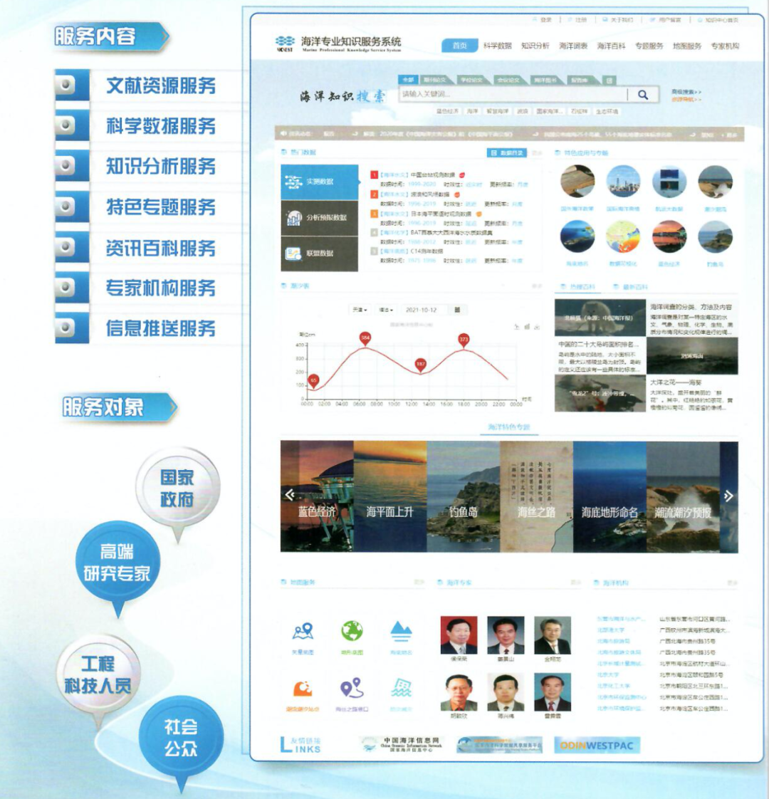 海洋工程专业知识服务系统主要分为文献资源服务、科学数据服务、知识分析服务、特色专题服务、资讯百科服务、专家机构服务、信息推送服务等。目前,系统访问量可达每年百万人次!