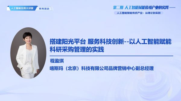 人工智能应用大讲堂系列活动:喀斯玛(北京)科技有限公司品牌营销中心副总经理程盈琪——搭建阳光平台 服务科技创新--以人工智能赋能科研采购管理